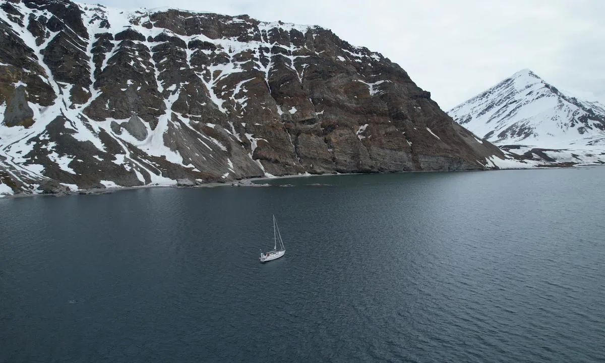 Magnifik ankringsplats belägen vid foten av Beerenberg, som når 2 277 meter, den nordligaste aktiva vulkanen på planeten.