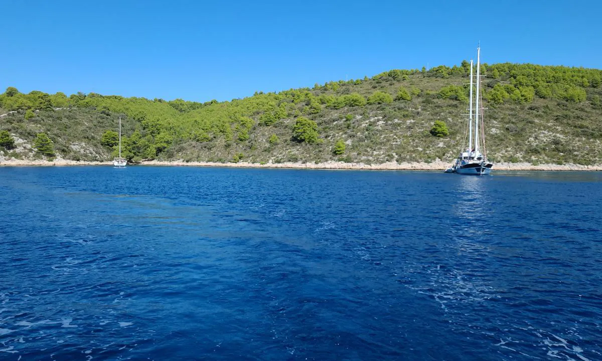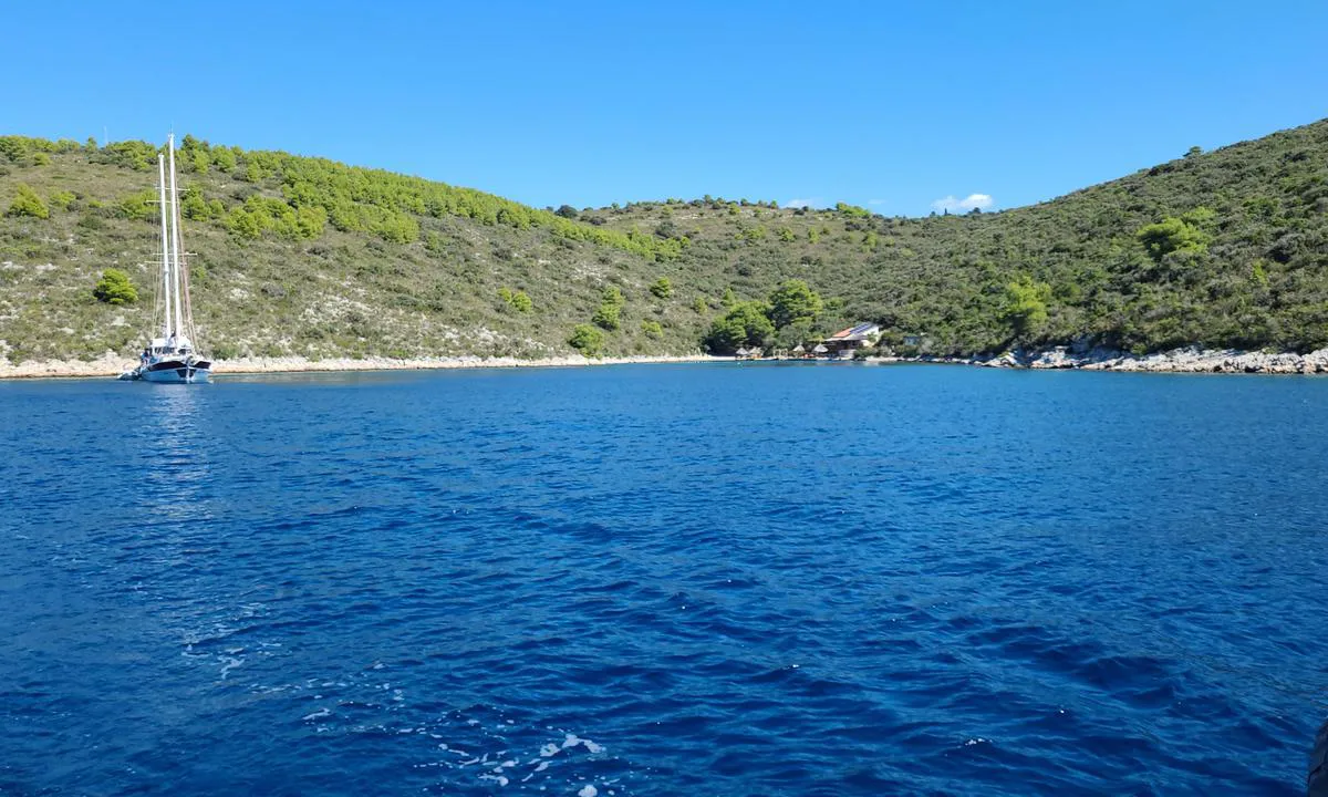 Trevligt ställe med viss skydd från norr/ostliga vindar. Inget finns här egentligen, så detta är en plats för bara simning och avkoppling. Ankarfäste lätt på cirka 7 meters djup. Tror att det är sandbotten.