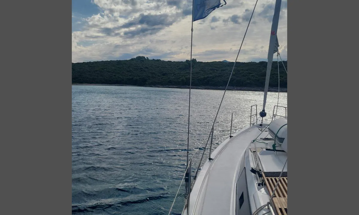 Åkte hit för att ankra men möttes av en kille i en jolle som sa att ankring inte var tillåtet. Hela viken är full av förtöjningsbojar där man förtöjer fram och bak. Organiserat av jolle-killen. 4 eur per meter båtlängd i slutet av september. Självklart mycket säkert, men lite campingplats-känsla. En annan jolle-kille säljer färskt bröd på morgonen vilket var trevligt.