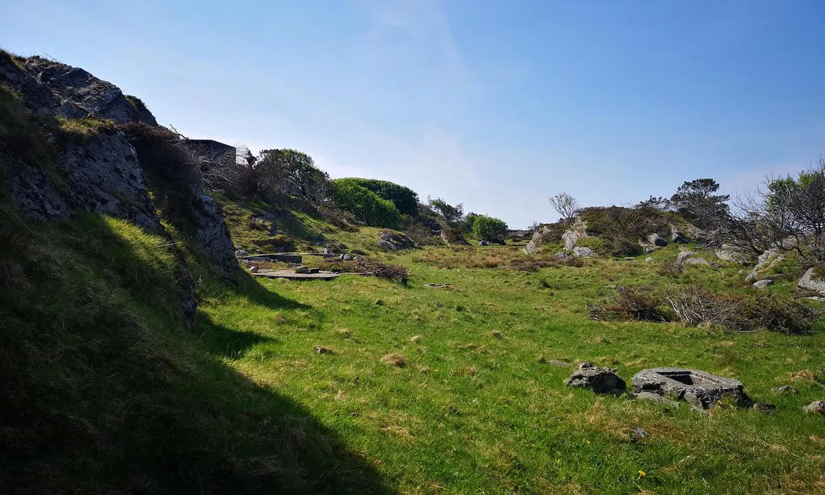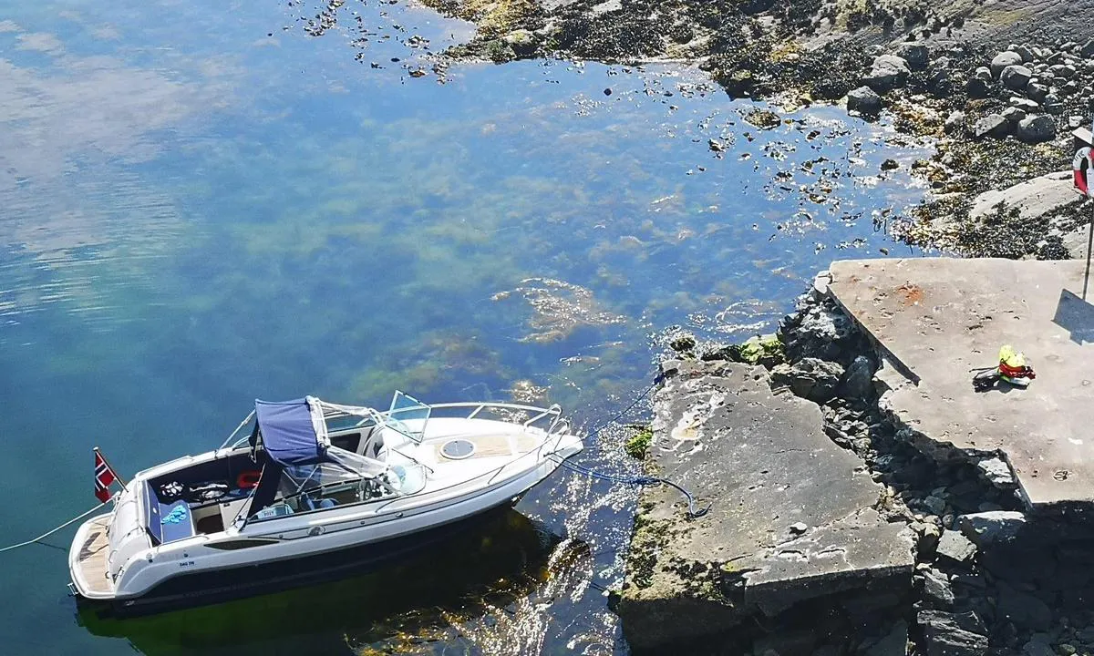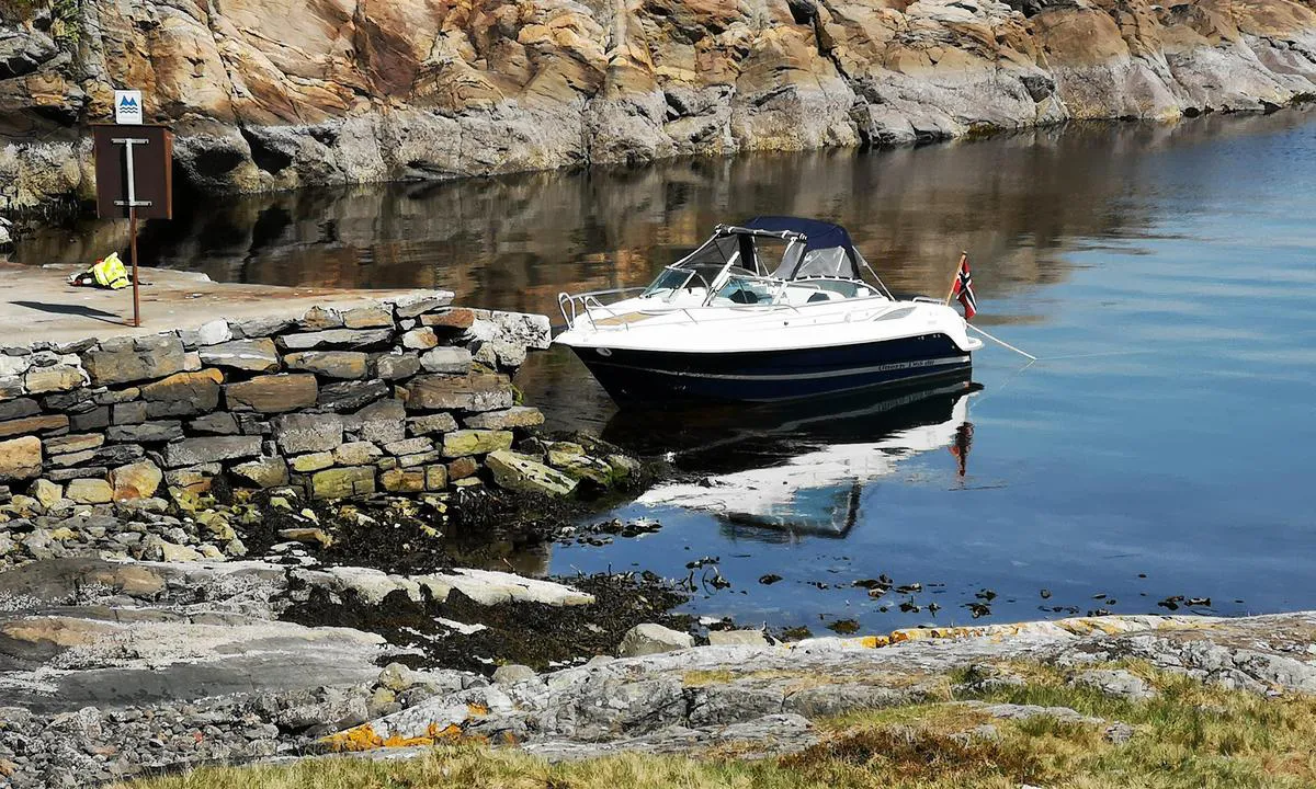 Ankomst är från sydost och enkel. Hjeltefjorden kan vara tuff, så detta bör betraktas som en vackertväderplats. Området är ett friluftsområde. Kajen har tyvärr brutits av tidens tand. Så man måste ligga på svaj. Ön är full av betong från andra världskriget, spännande för stora och små.